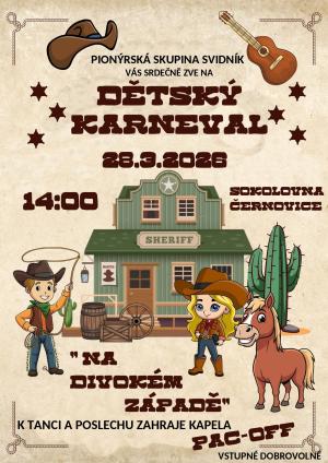 PS Svidník Vás srdečně zve na dětský karneval, který se koná 28.3.2026 od 14 hodin na Sokolovně. Tentokrát na téma "Na divokém západě"